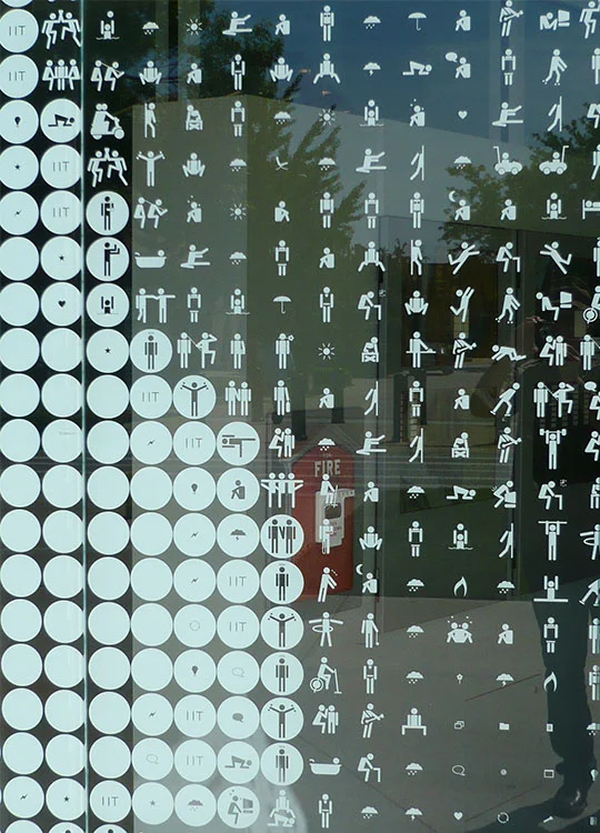 The McCormick Tribune Campus Centre is at 33rd and State Streets, Chicago. The fab graphic design is by 2 x 4.