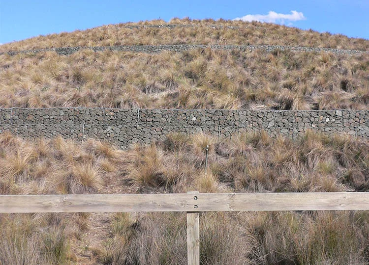 This time the circle is formed with a pair of gabion walls – stones held inside wire cages.