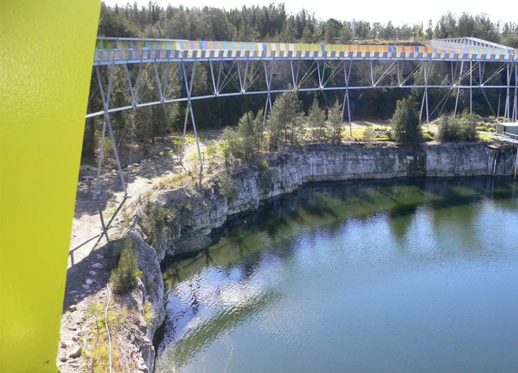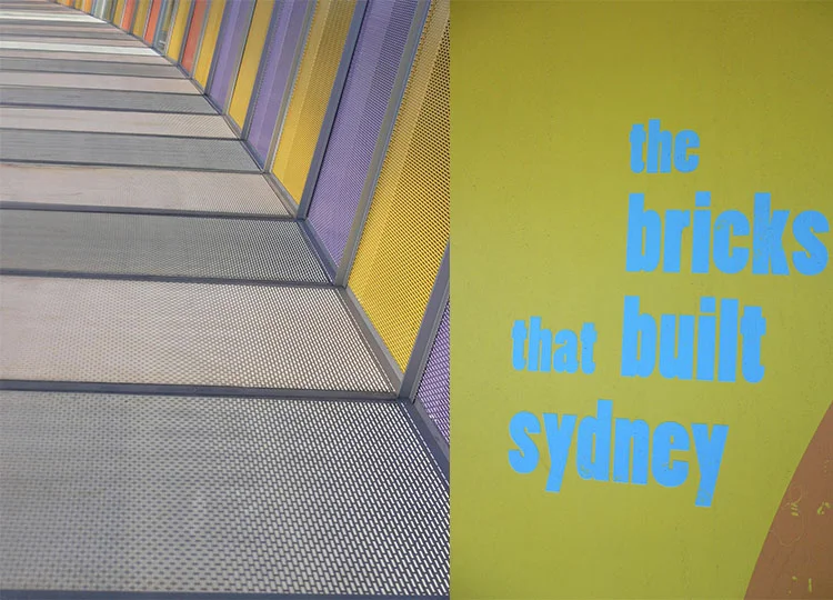 After departing solid ground via a skinny gangway, visitors traverse the 550 metres around the ring, reading and listening to stories of the place, people, process and products of the brick works.