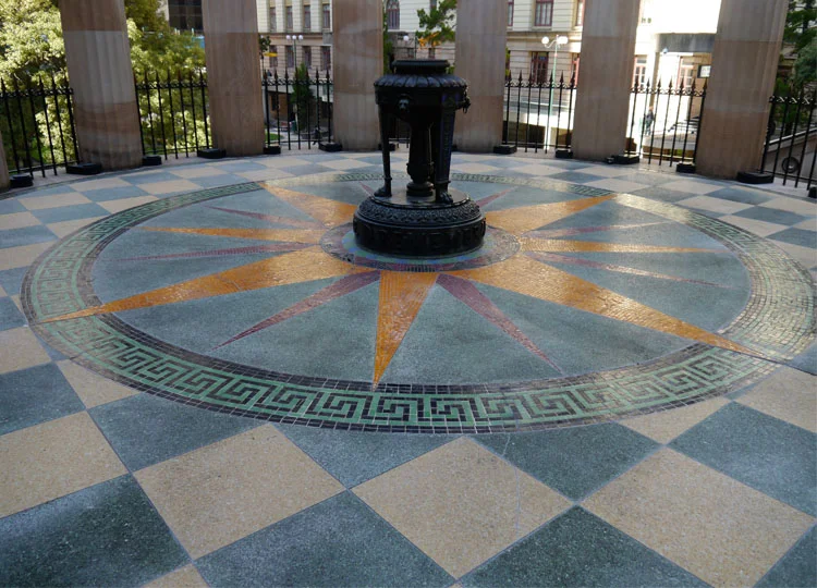 Below the Shrine of Remembrance is the main part of Anzac Square. Three paths branch out from the base of the Shrine. They represent the Australian armed services: Army, Navy and Air Force.