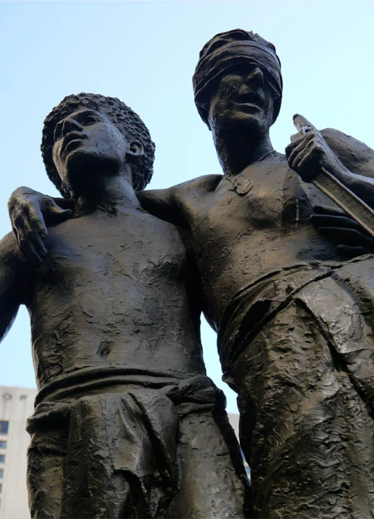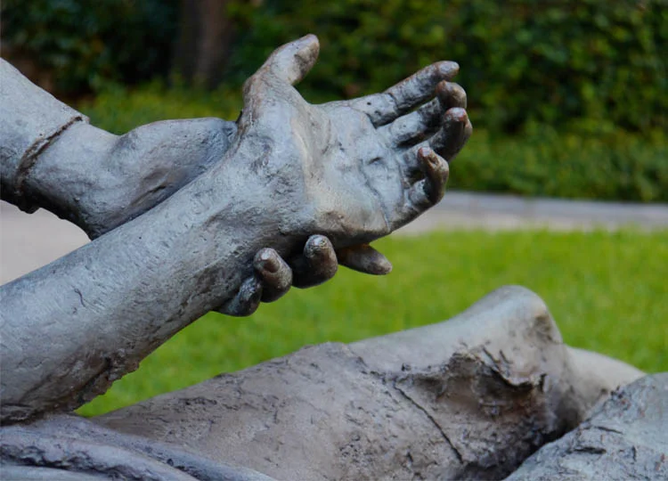 The soldier depicted in the other World War 2 sculpture has suffered too. He lies on the ground, eyes bandaged, thin and shoeless. His outstretched hand is supported by a nurse; she is the first, and only woman to appear at Anzac Square. This tiny detail, lost in the daily bustle of the square, is incredibly moving.