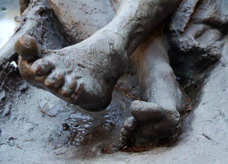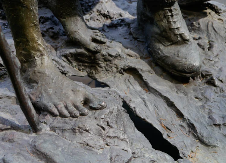 In contrast with the ‘Great War’ frieze, this soldier is weak, his boots are muddy and worn.