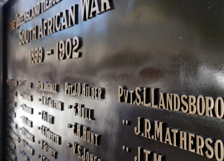 The earliest conflict commemorated is the Boer War. The bronze statue was cast in England and erected in Brisbane in 1919, before being relocated to its present location in 1939.
