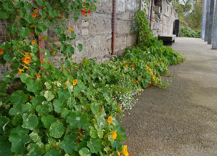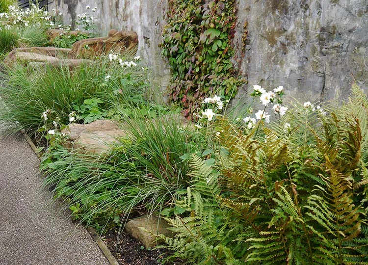 Additional species create the sense of a romantic ruin, as if the plants have just emerged spontaneously on the abandoned site.