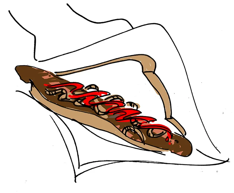 So grab a slice of fake white bread, whack a snag across the diagonal, zigzag on the sauce, and have yourself a very happy day.