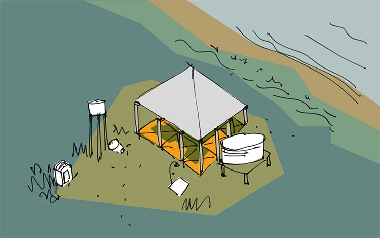 It had posts made from barely smoothed tree trunks, windows you had to prop open, and a floor made of triangular panels from the sides of old cane wagons.