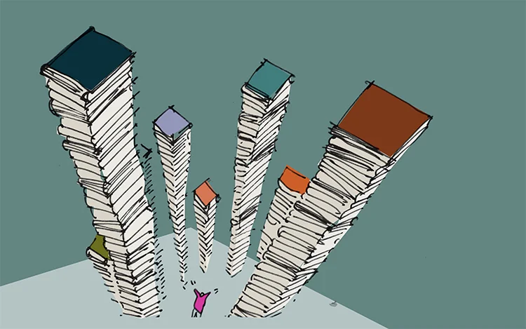 I love everything about books - their weight, feel, smell - and I love to look at them, buy them, and have them piled up around me.